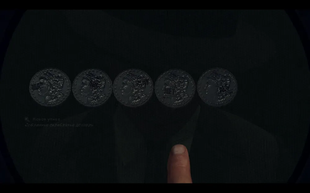 Облава на заводе. Следуем за полицейским. Осматриваем на груди трупа бумажник и монету в правой руке. Выходим из комнаты и осматриваем коробки впереди. Идем за полицейским, поднимаемся на 2ой этаж, осматриваем следующий труп – в правой руке деньги, в кармане на груди монета. Далее складываем монеты в правильном порядке, получается “Masangkay Metals”.