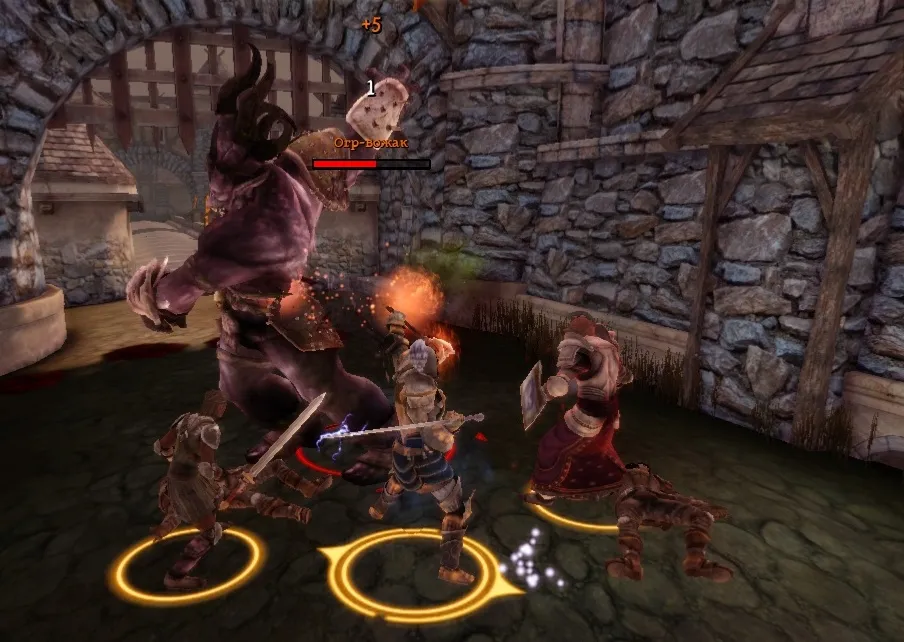Так или иначе, вы попадете в замок. Группа Порождений тьмы уже сражается с рыцарями эрла, и твари время от времени будут получать от ворот подкрепления – гарлоки-вожаки и эмиссары, а под самый конец явится огр-супербосс.