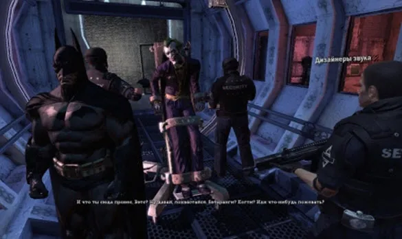 Выходим из комнаты дезинфекции и попадаем в длинный коридор названный петля. Идем по нему, на полу нарисованы стрелки, сзади нападут два бандита, это даже как то несерьезно. Двигаемся по стрелкам заходим в комнату и смотрим ролик. Джокер выпускает из контейнера странное тело, по-видимому результат каких-то генетических мутаций. Уворачиваемся от его прямых атак, удерживая пробел и нажимая клавиши движения влево или вправо, завлекаем монстра на силовые щитки и пока его корежит, отрабатываем удары. После нескольких подходов монстр падает, джокер делает себе пометки на будущее, сообщает, что комиссар Гордон захвачен и улепетывает. Получаем новое основное задание найти и спасти комиссара. Поговорим с охранником, он попытается провести нас за джокером но что-то не получается, тогда бэтмен решает пройти назад и проверить камеры заключения, на наличие улик. Возвращаемся только идем не в комнату дезинфекции, а налево в ранее закрытый проход. Добираемся до камер заключения, ориентируясь по карте. И сканируем ее в режиме детектива, обнаружив фляжку с бурбоном предателя охранника, начинаем выискивать его по парам спирта витающим в воздухе. Двигаемся по коридору выискивая следы вискаря в воздухе и попадаем в лифтовую, тут появляется бешеный доктор Харви и сбрасывает на нас лифт. Поднимаемся в комнату по лестнице и подбираем аудиозапись, послушаем и получим очки, теперь возвращаемся в лифтовую и смотрим вверх пока не найдем точку где можно зацепится крюком, преодолеваем полосу препятствий и попадаем на тусовку пятерых бандитов, поколотив всех двигаемся дальше. Пройдя по туннелям вентиляции, видим троих вооруженных автоматами бандитов. В лоб атаковать не стоит. Смотрим вверх и используем крюк, перепрыгиваем с горгульи на горгулью заходя бандитам в тыл. Планируем и, зажав клавишу Ctrl, подкрадываемся к ближайшему бандиту, наносим ему завершающий удар. Разбираемся с оставшимися бандитами. Заходим в комнату, где стоит еще один бандюк и также подкравшись сзади, валим его завершающим ударом. Двигаемся вперед и попадаем в вестибюль интенсивной терапии, тут два бандита с автоматами. Разобравшись с ними, джокер посылает еще троих бандитов, и этих успокоим. В комнате охраны берем аудиозапись. И идем к убитому охраннику. Осмотрев его, в наш радио-эфир врывается Эдвард Нигма, он дает нам загадку «Смотри не порежься об обШарпанный портрет». Смотрим чуть правее от предателя офицера, на стене висит портрет главного надзирателя Шарпа, сканируем его. После этого появляется охранник и открывает дверь.