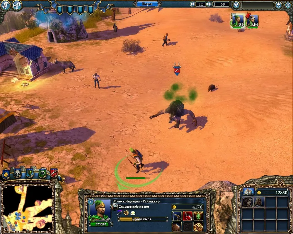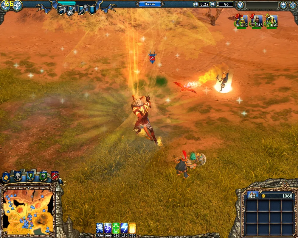 Во-вторых, повсюду разбросаны троны элементов – выходящие из них элементали представляют опасность даже для лордов. Стоит зазеваться и позволить этому врагу добраться до города – все здания пострадают очень сильно, да и крестьянам мало не покажется. И, разумеется, вся карта кишит минотаврами – но на фоне предыдущих противников их можно считать чем-то обыденным.