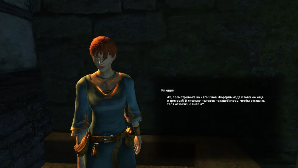 Спрашиваем у трактирщика, как бы привести Форгримма в чувства и получаем в подарок «Тёмное специальное» пиво. Даём выпить его гному и вуаля, он трезв. Спрашиваем, что он знает об убийстве Ардо и узнаём, что в день своей смерти, Ардо (простите за тавтологию:) должен был встретиться с начальником таможни Ташмманом в портовом районе. Ну хоть какая-то зацепка! Предлагаем гному вступить в нашу партию, и уже втроём идём в портовый район
