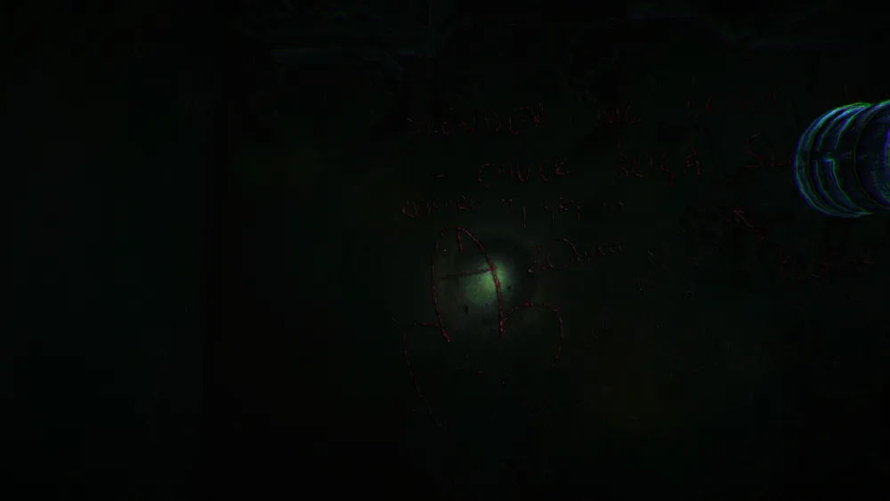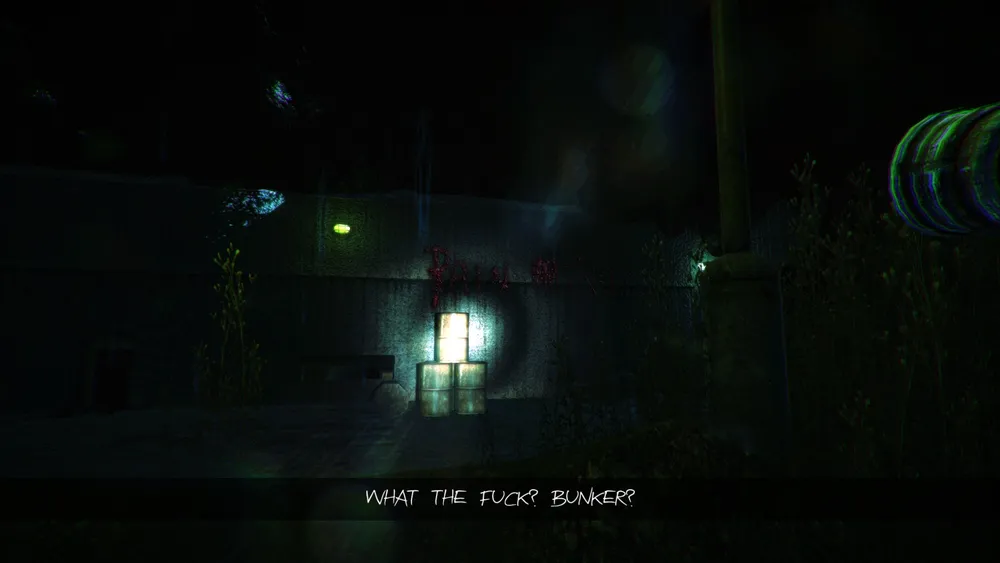 Обнаружив на месте "что за ху... бункер", проникаем вовнутрь, сэйвимся, берём батарейки ключи от заднего входа в Green Inn и, сорвав со стены записку, видим ЭТО: