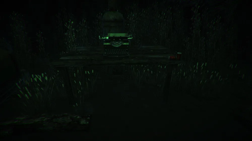 Чуть дальше за машиной стоит стол, на котором мы можем обнаружить батарейки для фонаря и печатную машинку - здешний сэйв. Сделав запись, подходим к калитке, за которой начинается Green Park. Прошагав всего пару метров, натыкаемся на антагониста игры - старого доброго Слэндэра.