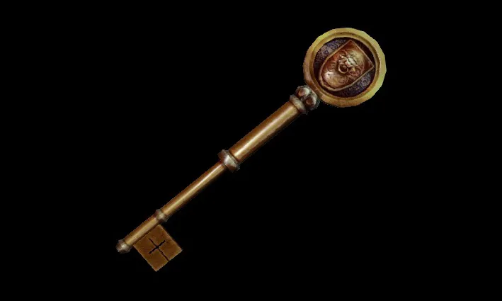 Если повертеть ключ в инвентаре, то можно обнаружить, что на нем выгравирован Меч. Если вы самостоятельно тыкаетесь в двери, то наверняка обнаружили, что над замками стоят гравировки «Меча», «Доспехов», «Шлема» и «Щита». Угадайте, какие двери открывает данный ключ? Если ваш ответ «Двери с эмблемой Меча», то вы, удивительным образом, оказались правы.