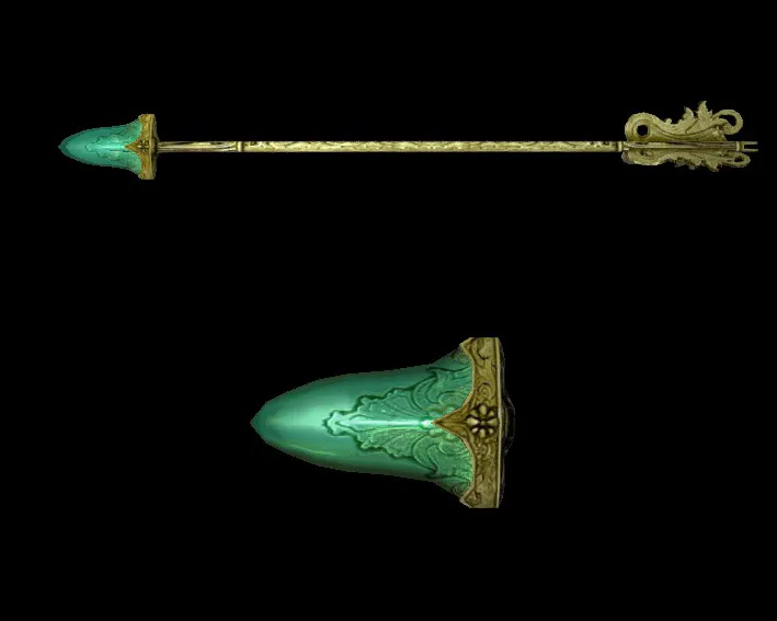 Пока не идем прямо в двери, а поворачиваем в длинный проход, налево относительно карты. Топаем по нему пока не натыкаемся на золотую стрелу, торчащую из статуи. Вынимаем стрелу и сразу открываем инвентарь. Там кликаем на нее и нажимаем «Изучить», а потом кнопку «Действие». Джилл сломает стрелу (ибо руки из Ж) и у вас останется только нужный вам наконечник. Пройдя дальше, можно открыть дверь отмычкой (автоматически) и попасть в то самое помещение, где раньше была статуя с голубым кристаллом.