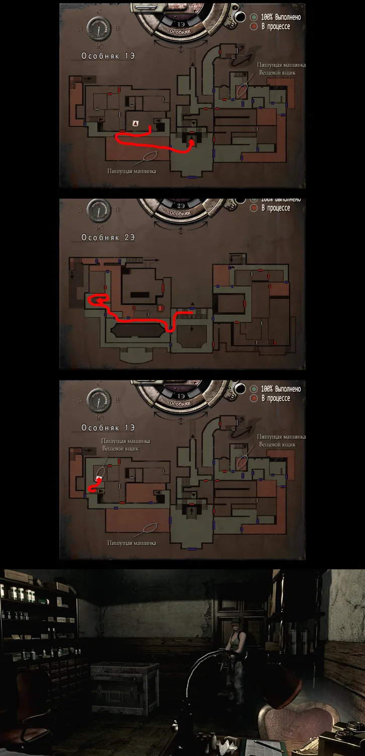 Это вам не квест! Большинство предметов можно взять совсем не в том порядке, в котором советую я. Более того, очень многие ключевые предметы будут отличаться у Криса и Джилл. Так что пользуйтесь этим руководством только если зайдете в тупик.