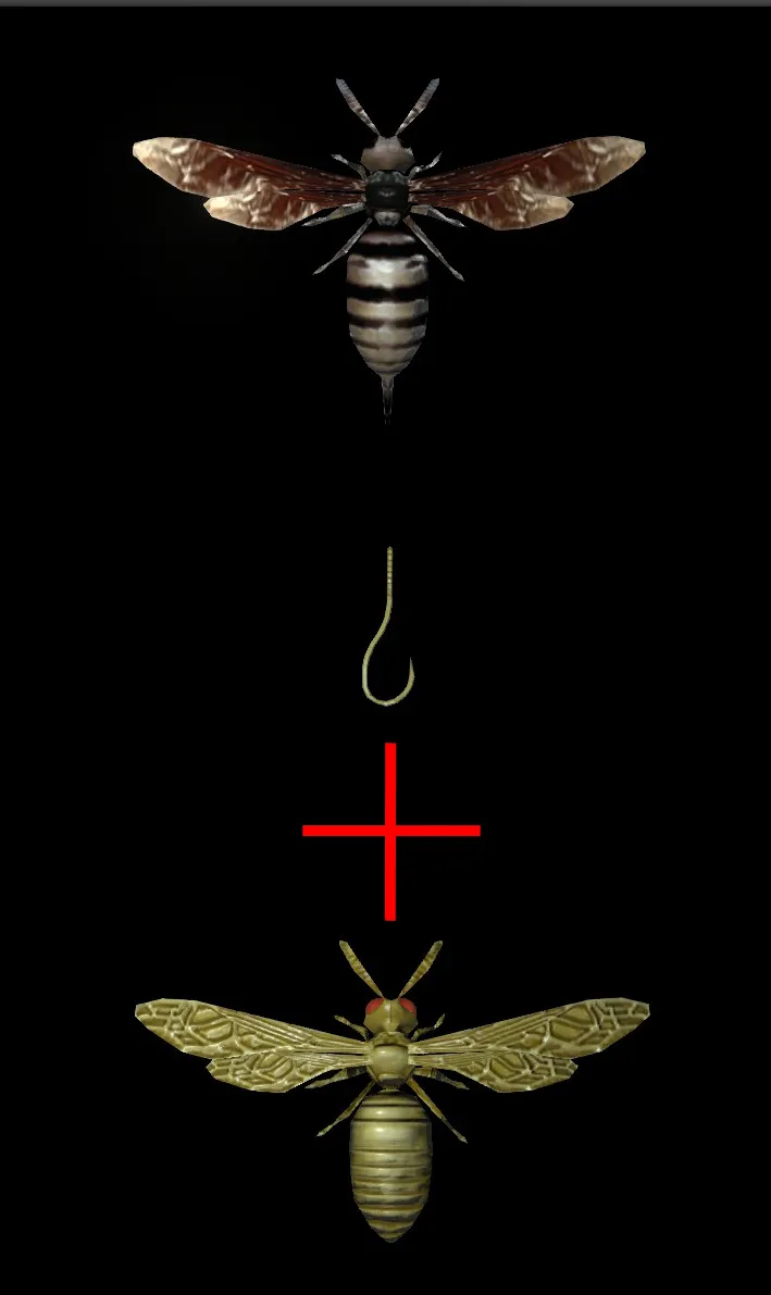 Теперь нам надо решить небольшую загадку с наживками. На стенах весят три рамки. С одной возьмите золотой крючок, с другой золотую наживку, с третьей наживку обычную. В инвентаре соединяем золотой крючок и золотую наживку.