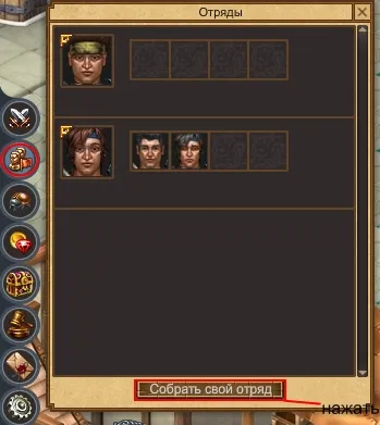 Чтобы собрать отряд нужно нажать на ту же кнопку, и вы увидите в открывшемся окне кнопку «создать отряд»