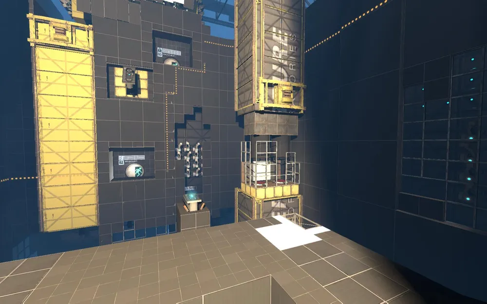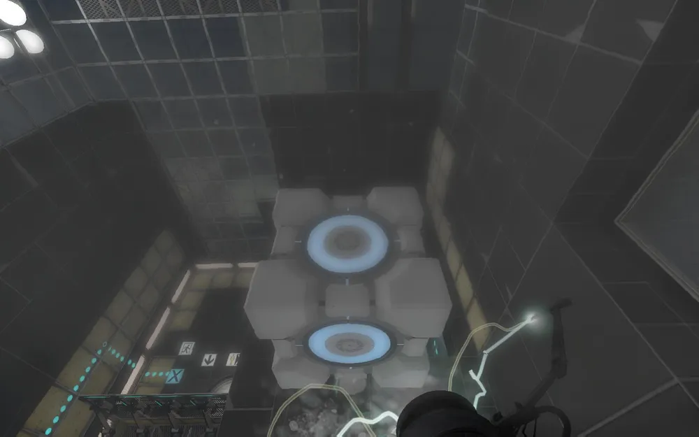 Эта задачка состоит всего лишь из одной части. Вам необходимо сделать так, чтобы преломляющий кубик висел в воздухе и включил лифт на выход из уровня, но при этом вам нужно обоим быть на нем.