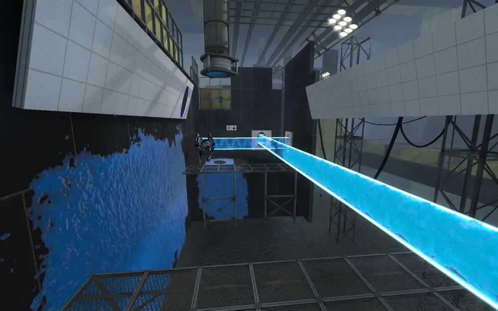 Еще немного! С помощью лазера и порталов уничтожьте турели и откройте дверь. Чтобы добраться до туда, сбросьте синий гель с потолка рядом с выходом. Уровень пройден!