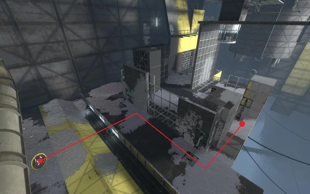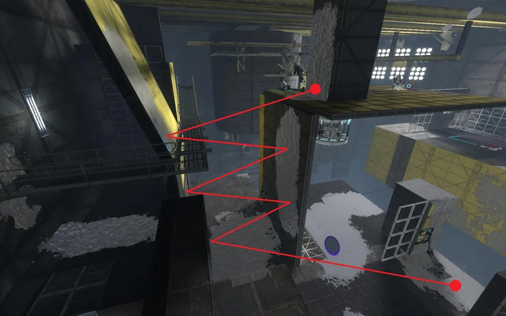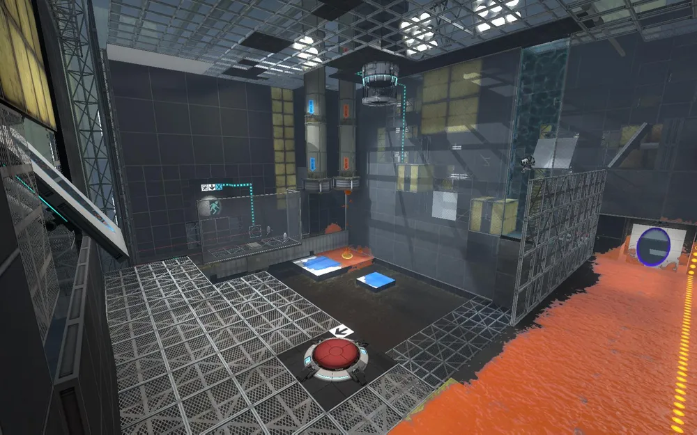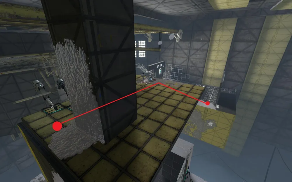 Be a boss: вы заметили, что на скриншоте выше нет никаких порталов? Эту конструкцию можно обойти, банально поставив один портал в синей точке справа (в скриншоте еще выше), а другой - рядом с одной из катапульт. При приземлении вы отскочите от земли и перелетите через портал прямо к кнопке.