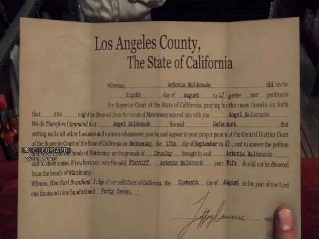 Забираемся в фонтан и находим второй отрывок, а также социальную карту Элизабет Шорт (Elizabeth Short). Эти улики приведут вас в Зал славы (Hall of Records), расположенный на Бродвее в одном квартале от полицейского участка.