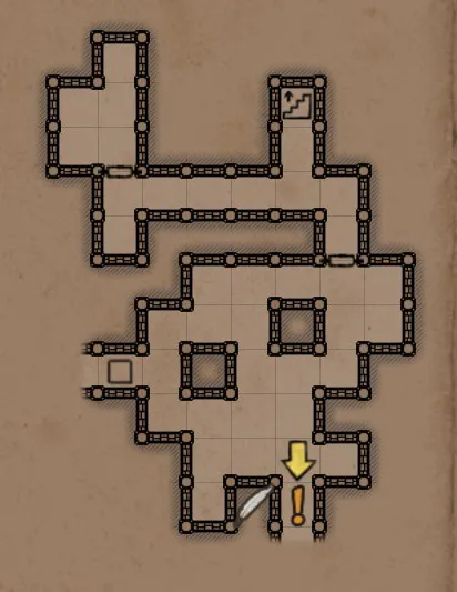 В одном из углов вдоль левой от входа стены лежат ботинки +4 к защите. В одной из ниш на левой стене имеется кнопка, открывающая проход к секретке.