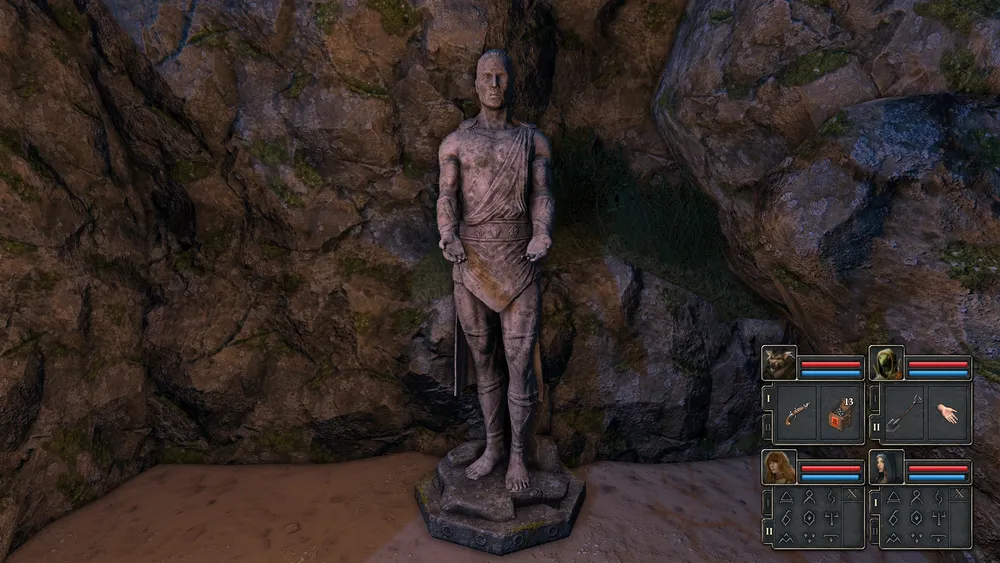 Убив его и продвинувшись вперёд, увидим закрытую дверь и статую с протянутыми руками справа от неё. На данном этапе у нас нет возможности открыть дверь – требуется капитанский клинок. Пройдя через коридор вдоль остова корабля, натыкаемся ещё на 2х мерфолков. Слева от входа надо очистить проход от зарослей, чтобы забрать крестьянскую шляпу - +1 к защите.