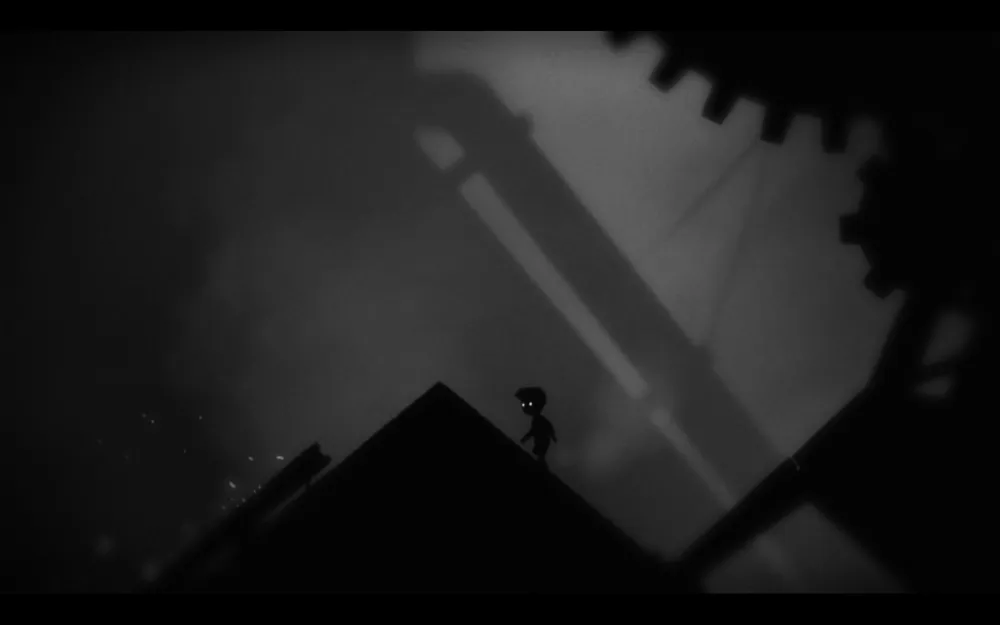 Проходим дальше и видим маленькую девочку, которая сидит и плачет. Но наши попытки подойти к ней поближе тщетны — нам на голову падает мозговой слизняк, и мы отправляемся назад. Перепрыгиваем по шестерне к лампе, мимо которой мы уже проходили. Но, пройдя по шестерне, обнаруживаем, что мы уже вовсе не на полянке с девочкой, а на каком-то заводе.