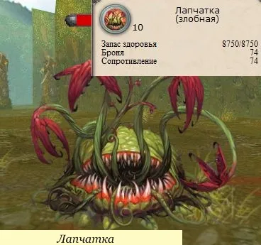 Наряду с речным ильником представляет достаточно серьезную угрозу для неподготовленных воинов. Ее абилка "Споры Миролюбия", которая кастуется с ударом достаточной силы, может доставить серьезные неприятности магам, которым будет весьма проблематично отхилить урон. Также, что следует из названия абилки, после ее применения лишает воина на несколько секунд возможности наносить удары. Но на этом неприятности посягнувших на жизнь милого растения не заканчиваются - очередная абилка - "Расплавить броню" позволяет лапчатке наносить удары еще более сокрушительной силы. Соответственно тактика строиться на постоянном контроле за жизнями воинов. Магам на данном боссе рекомендуется только лечить, ибо даже несколько неотхилянных ударов могут стать фатальными для одного из членов команды.