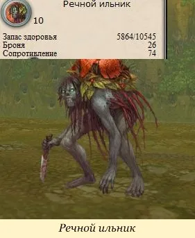 Наряду со своим собратом - речным ильником - обладает хорошей регенерацией хитов и мощными ударами. Имеет способность атаки по площади с оглушением. Кроме достаточно сильных ударов больше ничем не примечателен. Тактика схожа с оной против лапчатки.