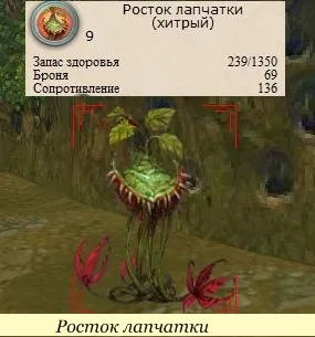 Росток лапчатки - при нападении сразу же применяет абилку "Мозгоотсос" - аналог заклинания "Шок" у магов - прерывает кастующееся заклинание и увеличивает время до его повторного применения. Также имеет регенерацию. Убивается танками относительно легко.