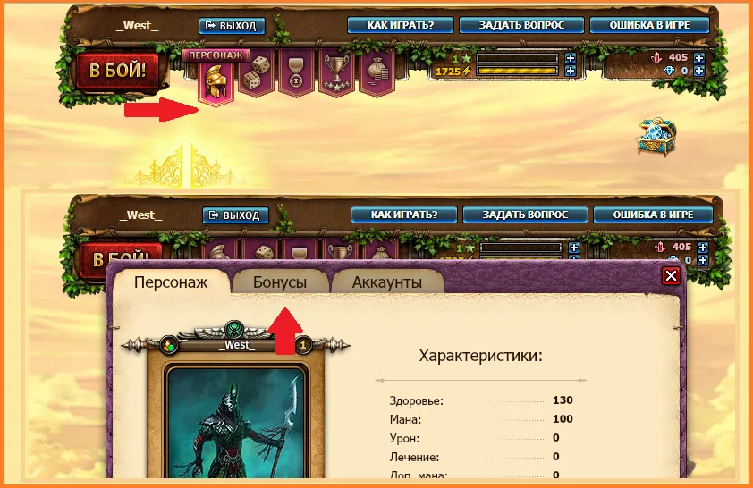 Далее привязываем почту, для этого заходим во вкладку Персонаж - Бонусы - Выбираем свою соц. сеть.И получаем 1000 энергии!