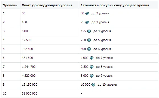 Таблица опыта (всегда пригодится, и помните, опыт - зло):