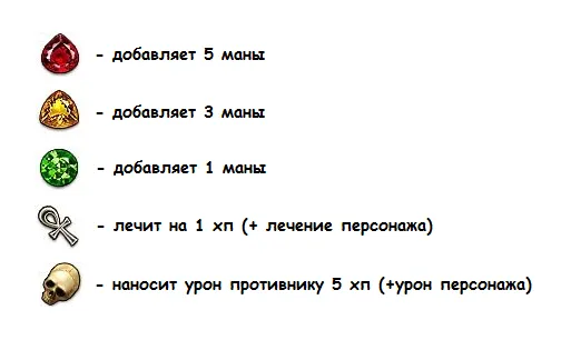 Правила боя: камни начинают действовать, когда из них составлена последовательность из 3 и больше камней. В бою можно передвигать камни, а так же применять заклинания или эликсиры (при применении заклинаний, используется мана).