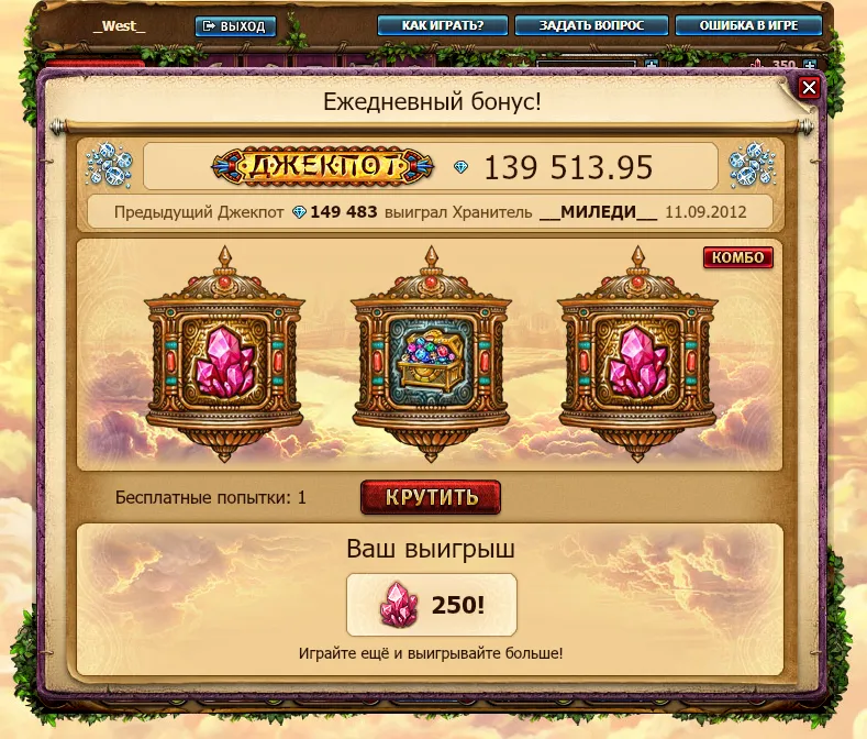 Самое первое - у нас открываются "волшебные барабаны", плюс - бонус за вход в игру (советую заходить каждый день, дабы сохранить серию и получать все больше и больше ресурсов). Получаем 10 энергии и 100 кристаллов, и на два бесплатных прокрута мне выпадает 500 кристаллов (награда зависит от уровня персонажа, дальше больше).