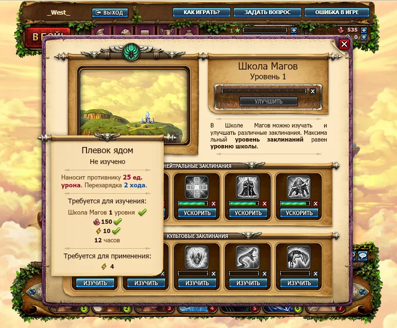 Заходим в Башню Магии и изучаем все нейтральные заклинания