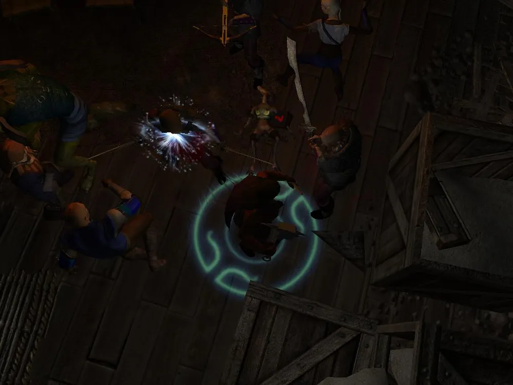 Следует посетить достопримечательность района – магазин «Диковинки Минтассана», посмотреть разные интересные штуки и, возможно, получить у хозяина квест – найти укатившийся в канализацию бриллиант. Упал камень не куда-нибудь, а в клуб троллей Нижних Ворот (про них далее). Тролли все такие же вредные, регенерирующиеся и мрущие только от огня и кислоты. Управившись с ними Вы вошли в покои вождя. Оказалось группа искателей приключений уже прикончила чудище и прибрала к рукам драгоценность. Даже не поторговавшись за нее, авантюристы телепортировались в неизвестном направлении. Одна улика осталась – кольцо с печаткой. Минтассан кольцо не опознал, но посоветовал обратиться к Соленому Джеку. Последний уверил, что кольцо принадлежит Клинкам Запада – мерзким ребятам, которые нарочно наступали на Квогга – его тень и лучшего друга. Они заслуживают смерти. Джек отметил притон шайки на карте и воспроизвел ее пароль. Найдя нужную дверь и произведя нужные звуки, Вы получили разъяренного огра, выбежавшего бить морды. Победив его и Клинков Запада внутри, Вы вернули бриллиант Минтассану. Тот создал падающую звезду и даже дал Вам посмотреть на нее в телескоп.