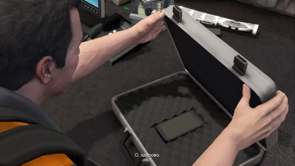Мы управляем Майклом, когда начинается сцена. Наша первая цель – охранник (отмечен красным маркером на вашем радаре). Направляемся к нему через дверь, и Майкл связывает руки охранника за спиной.