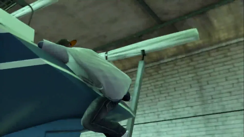 Следуем к лестнице и поднимаемся по ней на помост с нашими партнерами. Бежим до конца помоста и перебираемся на крышу. Другой полицейский вертолет появляется в небе. Можно попытаться подстрелить его, но все больше полицейских прибывает внизу, поэтому просто бежим к автомобилю.