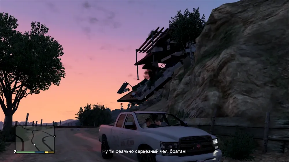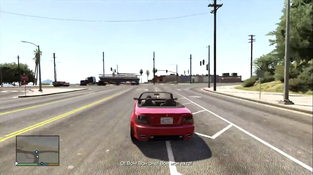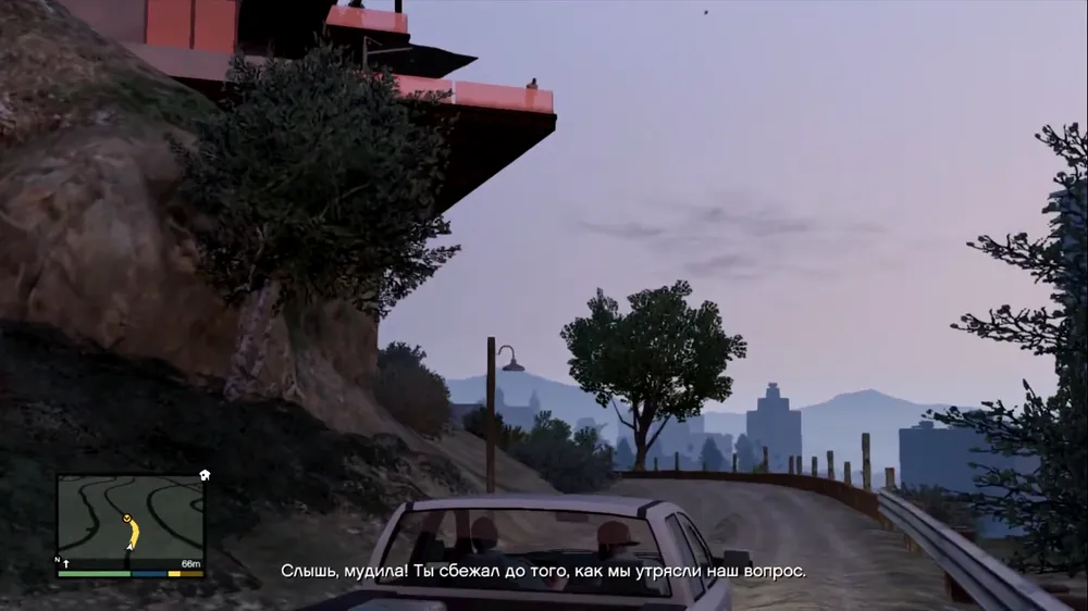 Едем к особняку Майкла (цифра 1 на карте). В пути ему звонит тренер, который объясняет, что дом на склоне не его. Женщина врывается в разговор, и мы узнаем, что он принадлежит Мартину Мадрасо, большой фигуре в мексиканском преступном мире Лос Сантоса.