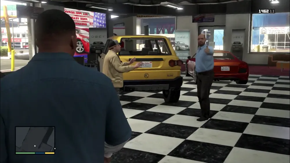 Вскоре после того, как Франклин покидает свой дом, ему звонит Симон, чтобы предложить еще одну работу по конфискации. Символ миссии, зеленая буква "S", вспыхивает на карте. Следуем к ней (цифра 1 на карте) и входим в автосалон, Симон очень рад нас видеть и объявляет Франклина работником месяца, чем Ламар крайне недоволен.