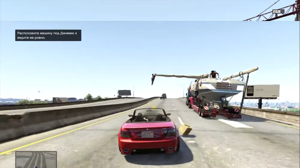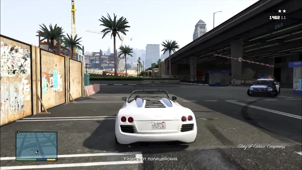 Играем за Франклина. Наша цель состоит в том, чтобы конфисковать пару транспортных средств, но это - законный угон, возврат автомобиля за просрочку платежа по кредиту, работа на дилера автомобилей премиум класса по имени Симон Етарян. Следуйте за Ламаром к дороге через двор здания. Мы видим два крутых спортивных автомобиля: белый Obey 9F Cabrio и красный Dewbauchee Rapid GT. Подходим к любому и садимся в него, автоматически Ламар прыгает в другой. После того, как поднимется крыша кабриолета, Ламар жмет на газ и выезжает на автостраду Дель-Перро.