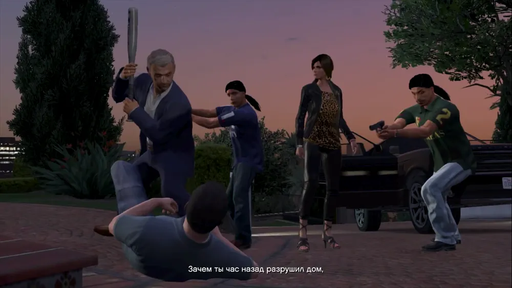Два черных внедорожника, полные вооруженных громил Мадрасо начинают нас преследовать. Майкл ведет автомобиль, а Франклин отстреливается. Можно переключаться между нашим персонажами, если хотите. Когда мы, наконец, уходим от преследователей или убиваем их, желтый маркер у дома Майкла вновь появляется на карте. Следуем к нему. Как только друзья подходят к дверям особняка, Мадрасо с его людьми подъезжают к дому, а Майкл получает удар битой и огромный счет на ремонт дома Мадрасо.
