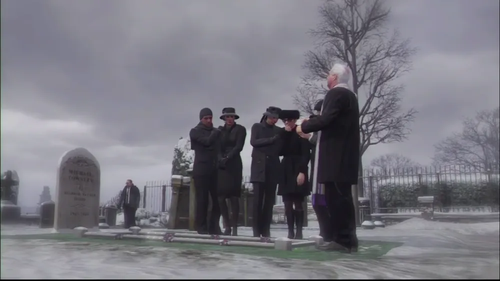 Пролог завершается сценой на кладбище. Близкие, понесшие тяжелую утрату, собираются вокруг гроба, помещенного в мерзлую землю, с надгробным камнем, на котором читается "Майкл Таунли". Интересно, что снайпер FIB, ответственный за стрельбу в Майкла, прогуливается рядом с траурной церемонией. А сам Майкл подходит к железному забору кладбища, чтобы все видеть. Проповедник красноречиво (и иронично) говорит: "Отец наш.. Пути Твои неисповедимы. Но мы точно знаем, что ты будешь милостив к нашему другу".