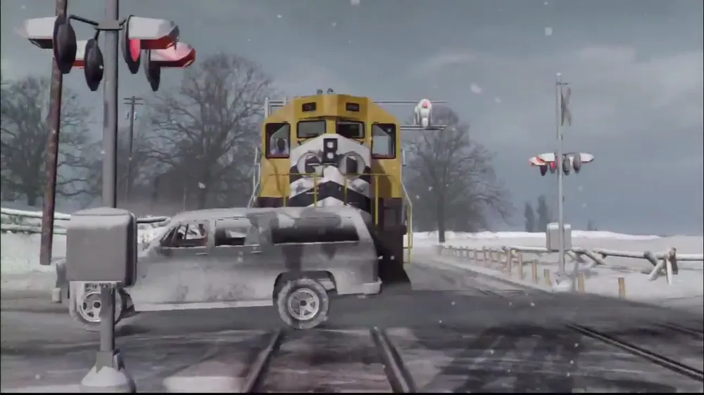 Жмем на газ и следуем к желтому маркеру на карте. Мы приближаемся к Людендорфу, где сталкиваемся с полицией, которая перегородила дорогу (цифра 2 на карте). По совету Тревора поворачиваем направо на проселочную дорогу. Гоним по ней к пересечению с железнодорожными путями, где горит красный сигнал светофора. Автомобиль не успевает проскочить переезд, и поезд врезается в него, отбрасывая его в дерево. Вынужденная оставить автомобиль команда пытается достигнуть пункта назначения пешком, но снайпер FIB думает по-другому. Он подстреливает Брэда, а потом и Майкла.
