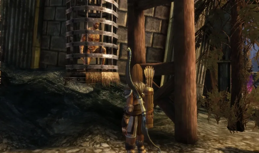 Неподалеку от Интенданта есть клетка, в которой томится узник, который попросит принести ему еды и воды. Если вы немного затянете разговор, то он предложит вам в обмен ключ от сундука магов. Можно убить пленника (это не понравится Алистеру), или выполнить его просьбу с помощью стражника, стоящего рядом (Алистер это одобрит).
