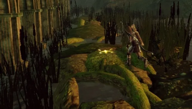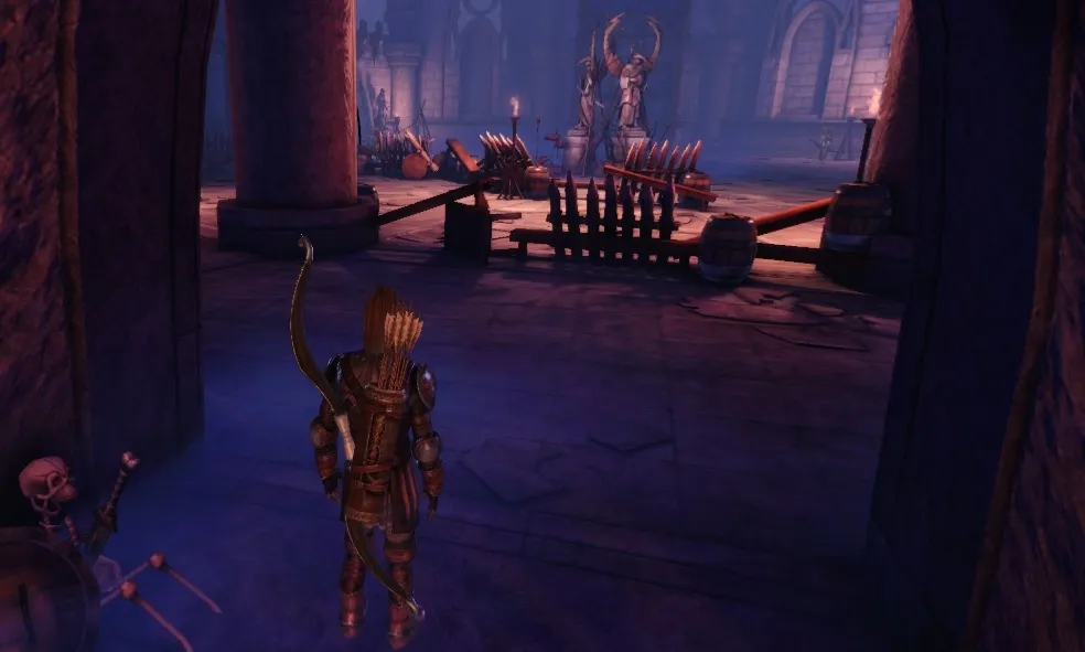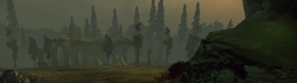 Развалины находятся на северо-востоке локации, и пройти к ним можно, только уничтожив две серьезные группы Порождений Тьмы. Первая, усиленная Эмиссаром, встретится вам у моста на юге карты. На земле повсюду расставлены механические ловушки, поэтому имеет смысл отправить вперед разбойника, чтобы он их обезвреживал. Вторая группа охраняет непосредственно подступы к развалинам, и возглавляется гарлоком-вожаком, желтым мини-боссом. Этот отряд немного многочисленнее, поэтому можно выманивать Порождений Тьмы по одному-два, стреляя в них из лука с безопасного расстояния.
