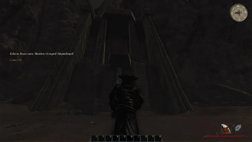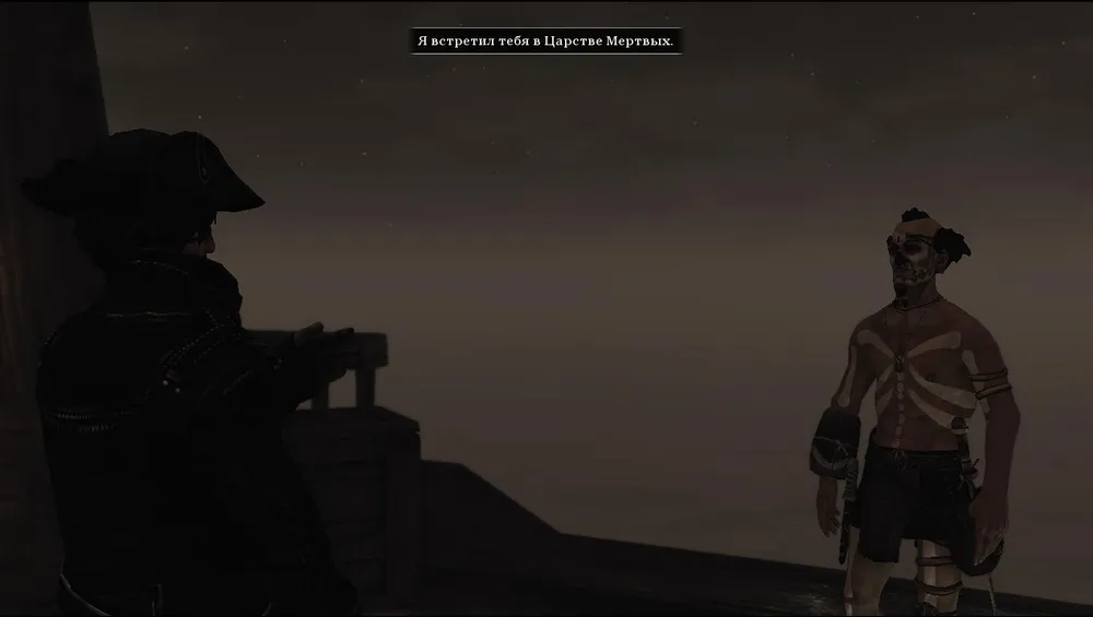 Остров Мертвецов - последнее место в нашем путешествии. И вообще последнее место, куда бы я отправился, но нам сюда надо, возродить Стальную Бороду, чтобы поговорить с ним. Поговорив с экипажем, понимаем, что никто не хочет спускаться на эту проклятую землю. Так что сходим с бортика и идем к храму. По пути к храму откройте сундук, там будет лежать гарда меча "Ветра Бурь". После этого поднимаемся по ступенькам ко входу в храм. Говорим с Дао, поначалу, он не хочет нас пускать, но при упоминании Мары в разговоре, абориген сразу сменит гнев на милость, и даже поможет со всеми приготовлениями.