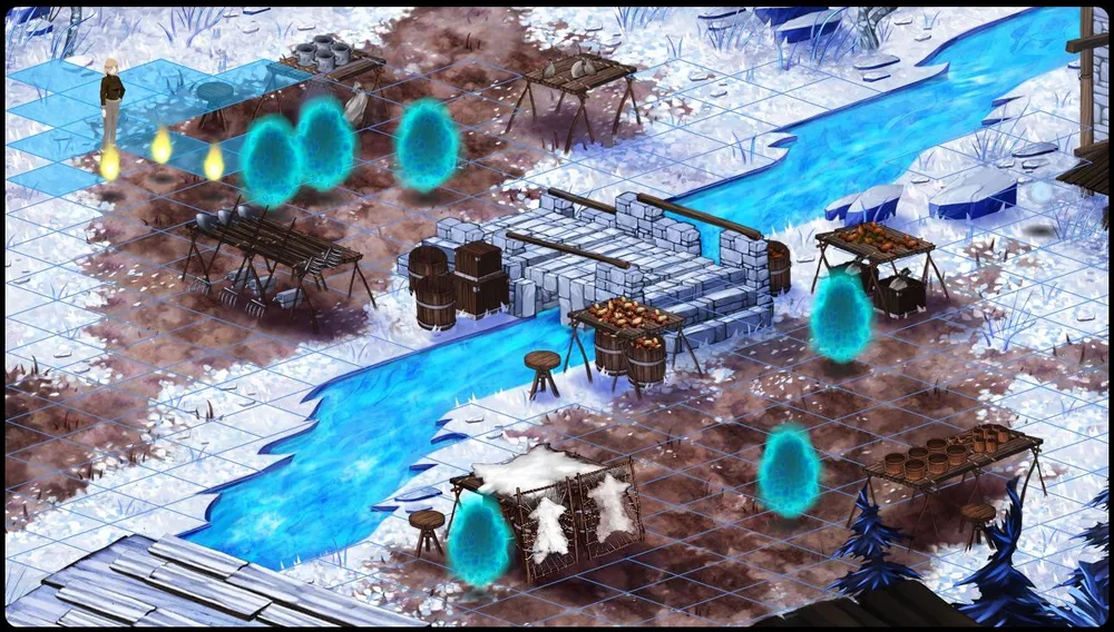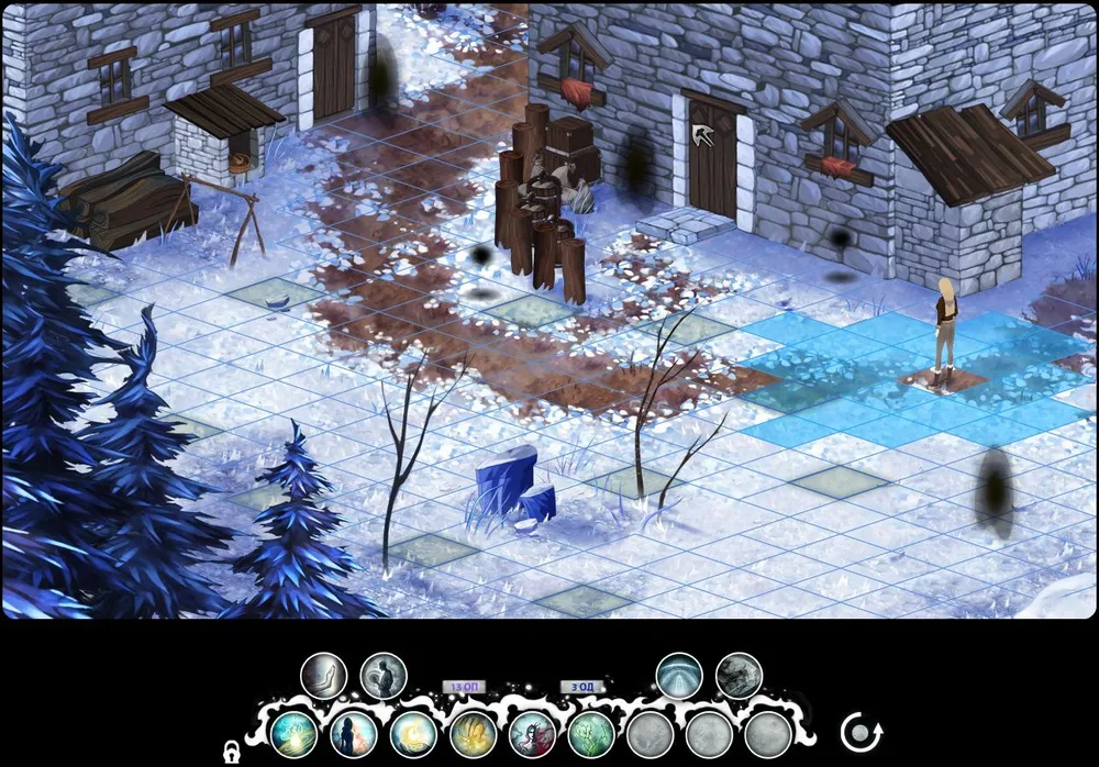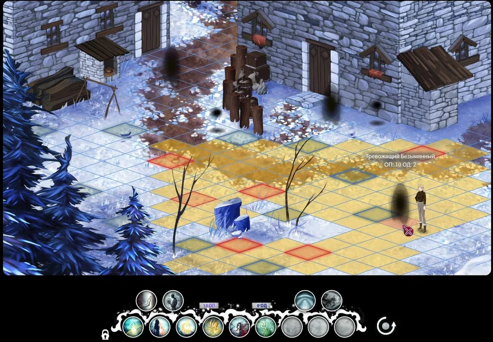 Нижний путь кажется близким, но он закрыт шахматным полем Фантомов и несколькими врагами. Если идти к нему, то придется идти против часовой стрелки мимо домов, в обход ловушек - Фантомов. Можно пройти по ним, но тогда вы потеряете на пару ходов очки Психе, что может оказаться роковой ошибкой при близости врагов.