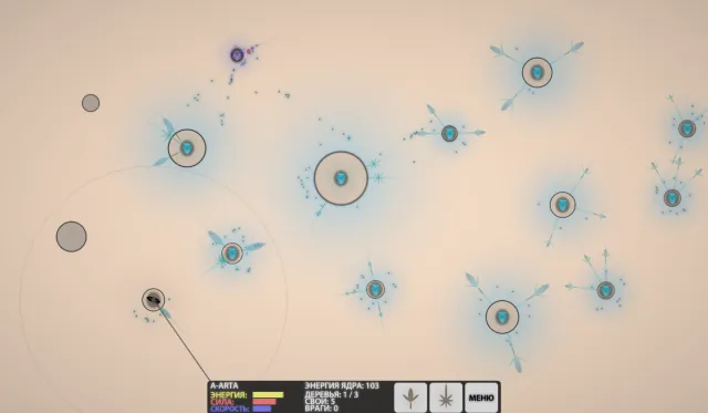 Но как только вы посадите на нем дерево, к нему устремляются «Серые», и вы должны будете выдержать бой. Лучше всего чтобы при этом около астероида было хотя бы 10 зернышек. Спасает лишь то, что “Серые” не размножаются. Хватает и равенства сил по количеству зернышек.