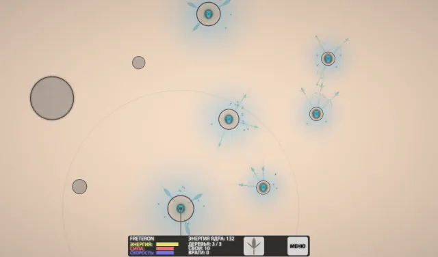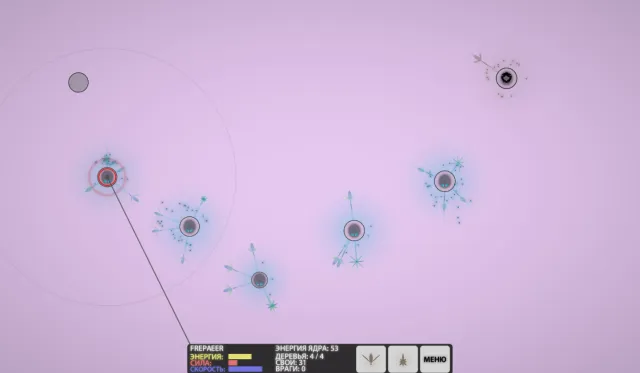 Сначала мы несем потери от зарядов, которые выпускают эти деревья, но потом берем вверх. Сила ломит нежелание врага сдаваться, как ветер соломинку, и, победив, мы приобретаем возможность сажать деревья такого вида. Они не выращивают зернышки, и вроде бесполезны, но при вражеской атаке на астероид, они выпускают особого вида зернышки-торпеды, которые подлетают к атакующему зернышку и взрываются, нанося вред ему. Высадив два защитных дерева, получаем сообщение о правильности выбора. Остаются ещё несколько астероидов, которые надо проверить и захватить.