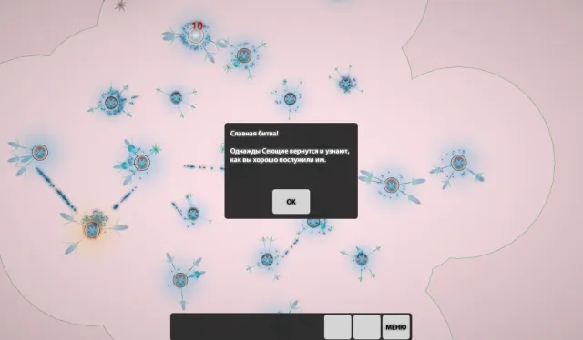 После захвата большого астероида, появилась возможность послать зернышки на большое расстояние, и обнаружить своих союзников аж на двух астероидах! И сразу послать их сразу в бой, на помощь своим наступающим зернышкам. Таким путем, были захвачены несколько последних астероидов.