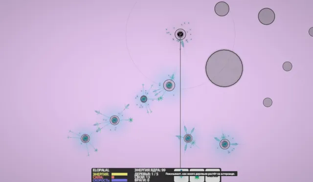 Но это не всегда удаётся с наскока, надо копить силы, захватывая другие малые астероиды и сажая на них деревья. Выращивать себе на них армию зернышек.
