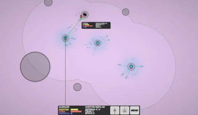 Где своей энергией ослабляют энергию астероида. Если астероид захвачен чужой древесной империей, то сначала его энергия падает, а потом после захвата возвращается к своему максимальному значению. Чем больше энергия астероида, тем больше для захвата требуется зернышек.