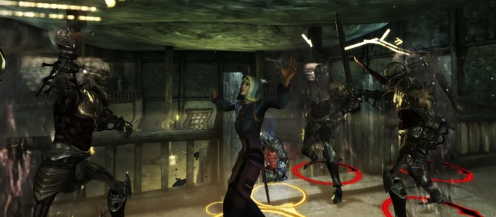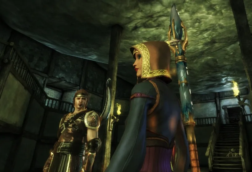 Следующая дверь приведет вас на крепостную стену, где вы встретитесь с первым элитным вражеским персонажем – эмиссаром генлоков. Если ваш персонаж – разбойник, то он может незаметно подойти к баллисте рядом и выстрелить по противникам, разом нанеся им всем внушительный урон. В другом случае придется отправить ту же Мхаири вперед для отвлечения внимания, и стрелять уже на опережение. Следующая дверь вернет вас в крепость, в западную часть первого зала, куда вела заблокированная дверь. Как оказалось, она была завалена мебелью и камнями. Тут же находится рычаг, поднимающий решетку Северного коридора.