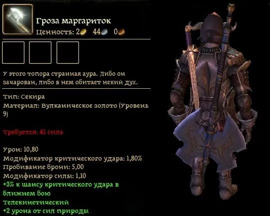 - Бонус к атаке: + 3% вероятности нанесения критического удара, + 15% урона критического удара/удара в спину.