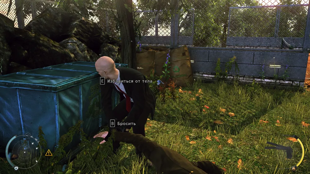 за ногу его и к контейнеру, дотаскивем до момента до появления яркой надписи спрятать тело,