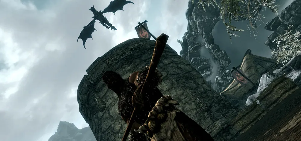 После создания персонажа нас ведут на убой и тут же казнят одного из преступников - мы на очереди. Наш герой подходит к месту казни и прижавшись к плахе готовится к смерти, но неожиданно нам везет - большуший дракон садится на соседнее строение и все, включая палача, естественно начинают паниковать. Пока это происходит, пламя дракона сжигает округу и тех многих, находящихся там. Мы же, со связанными руками начинаем немного контролировать ситуацию и можем двигаться. Дальше нужно немного побегать и оценить красоты огня в Скайриме. Дальше просто слушаем советы и не красуемся долго перед драконом.