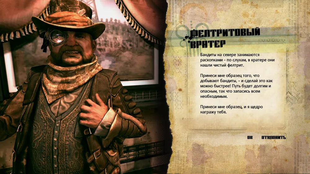 По возвращении в город, наведываемся к мэру и получаем задание. Нам нужно добыть экземпляр фелтрита. Точнее не добыть, а отбить, так как он находится у бандитов.